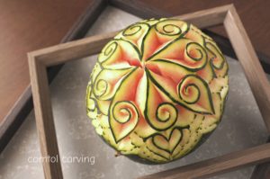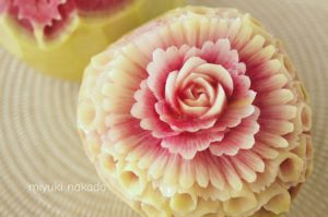 赤肉メロンに薔薇を彫りました。