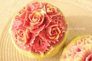 紅芯大根にフリルの薔薇を彫りました。