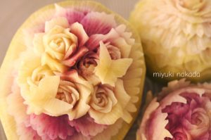 今年も紅芯大根にちょうちょと薔薇を彫りました。 蝶の下に薔薇を彫るのは難しかったけれど、反り薔薇が彫…