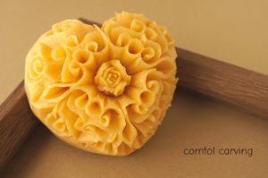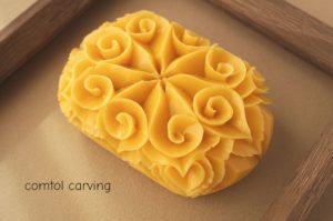 渦巻模様 をはちみつ石けんに彫りました。